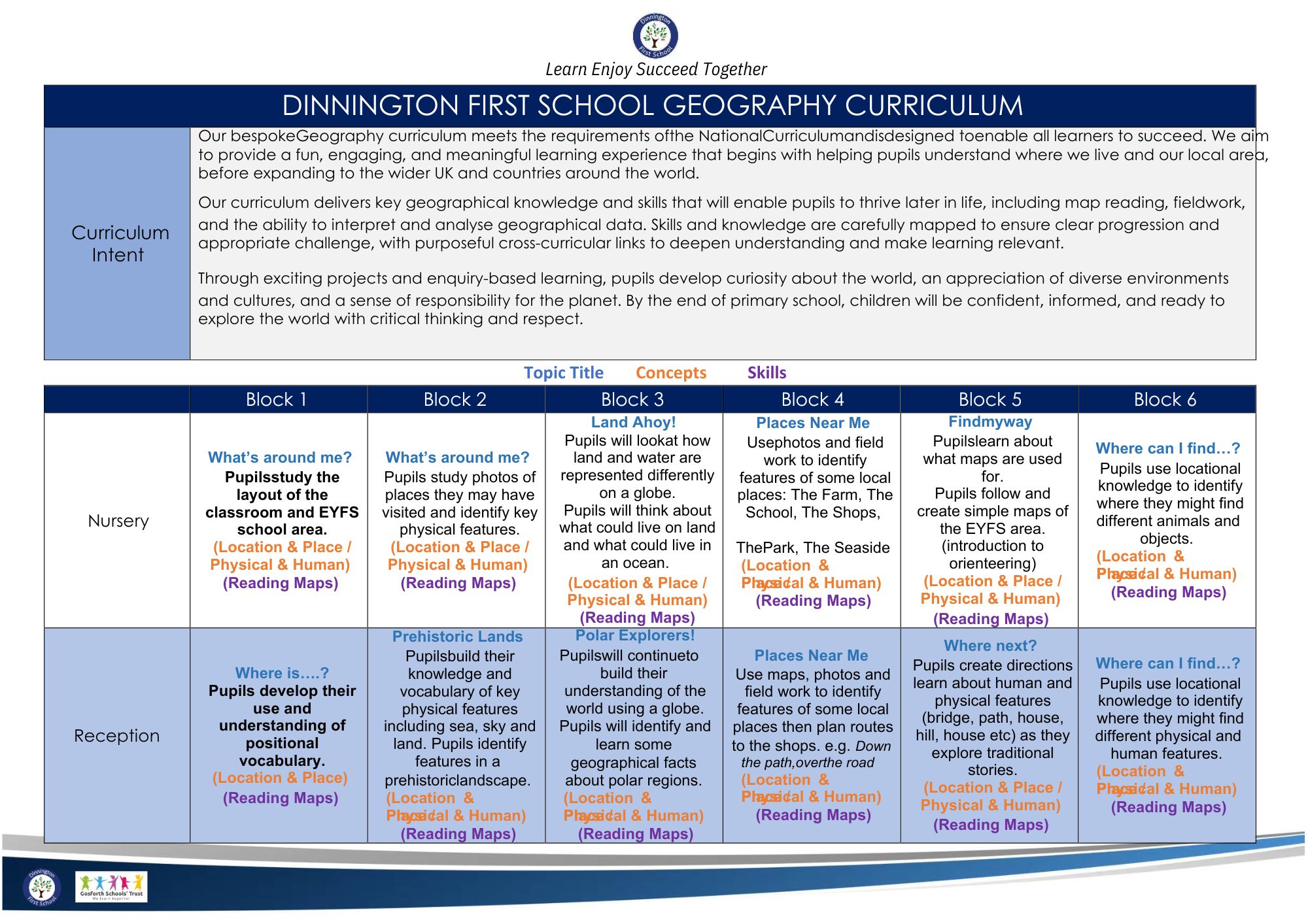 Our bespoke Geography curriculum meets the requirements of the National Curriculum and is designed to enable all learners to succeed. We aim to provide a fun, engaging, and meaningful learning experience that begins with helping pupils understand where we live and our local area, before expanding to the wider UK and countries around the world. Our curriculum delivers key geographical knowledge and skills that will enable pupils to thrive later in life, including map reading, fieldwork, and the ability to interpret and analyse geographical data. Skills and knowledge are carefully mapped to ensure clear progression and appropriate challenge, with purposeful cross-curricular links to deepen understanding and make learning relevant. Through exciting projects and enquiry-based learning, pupils develop curiosity about the world, an appreciation of diverse environments and cultures, and a sense of responsibility for the planet. By the end of primary school, children will be confident, informed, and ready to explore the world with critical thinking and respect.